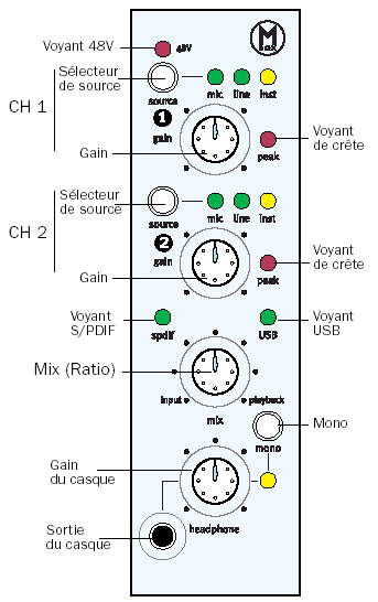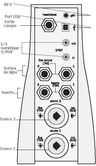 et d'une alimentation fantôme 48 V commutable. Ces deux entreées
