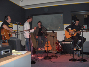auditeurs à l'antenne, lit les SMS reçus. Le groupe