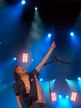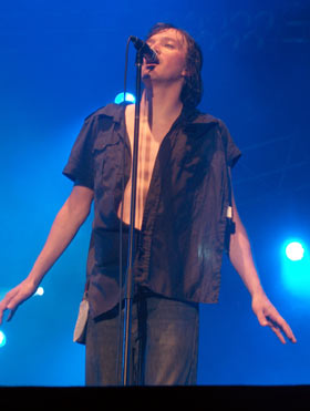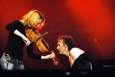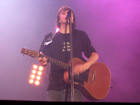Accompagné d'une guitare, d'un violon et d'une batterie,