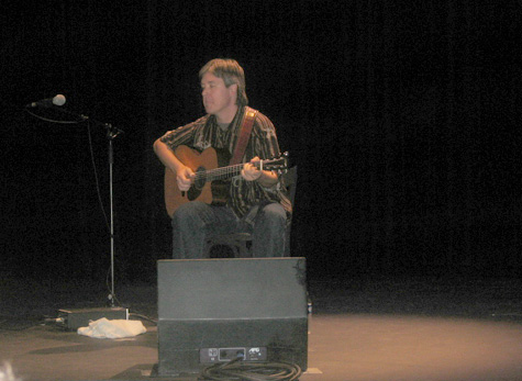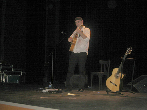 La salle retrouve l'obscurité et Pete Huttlinger arrive