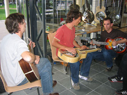 de leurs guitares sur la scène ouverte que nous