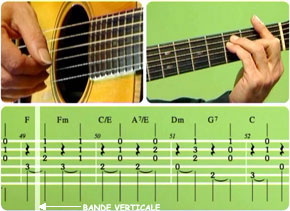 dans l'ordre d'apparition avec une vue de l'accord en tablature,