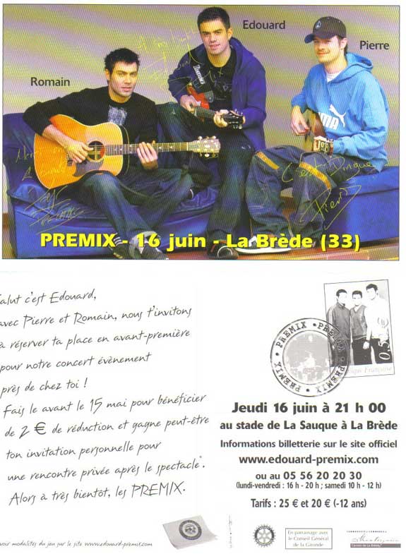 - le 16 Juin Concert Evenement PREMIX à la BREDE