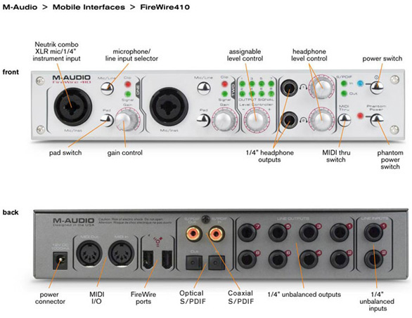 paramètres tels les signaux MIDI et l'alimentation fantôme