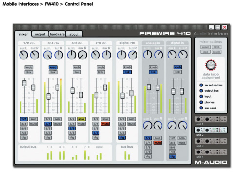 Finalement la page MIXER permet d'assigner les bus, les retour et