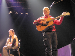 Sur la scène du Bataclan, deux musiciens le rejoignent :