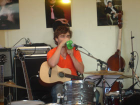 les riffs de sa petite guitare sur une première chanson.