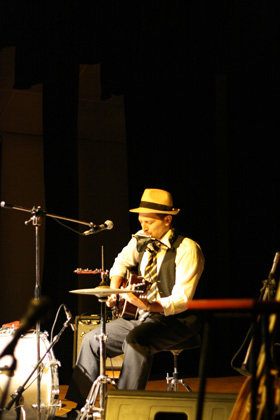 d'une guitare, d'une grosse caisse et d'un harmonica, il nous transporte