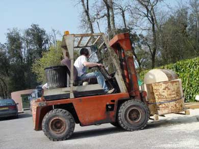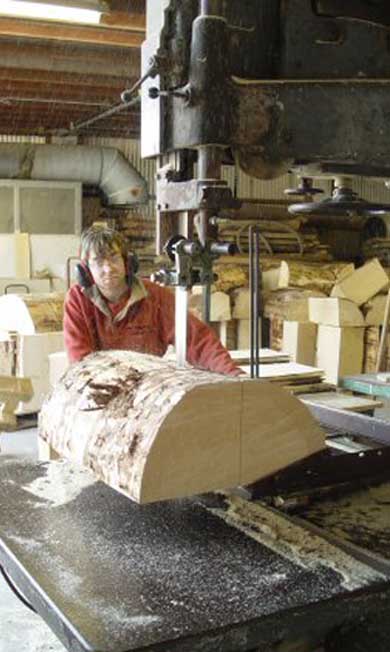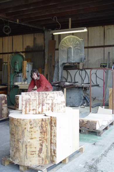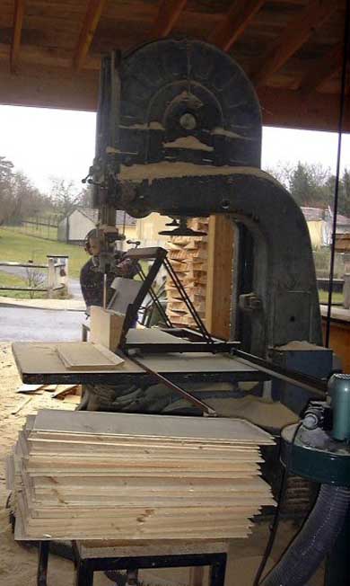 Guy amène les quartiers vers la scie ( et promène la poubelle