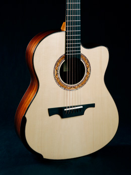 La taille "grand concert" de ce modèle est extrèmement versatile et peut être utilisé dans différents styles de musique : finger picking, strumming léger et jazz acoustique.