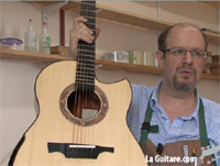 Après l'interview et la visite de son atelier, Michael Greenfield nous présente dans cette troisième et dernière vidéo, l'un de ses modèles à cordes acier : la G2.