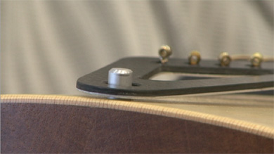 Un attache cordier permettant le réglage en tension des cordes sur le chevalet