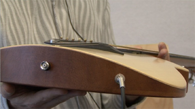 - Un capteur capte les vibrations des cordes sous le sillet de chevalet comme la plupart des micros mais aussi  les vibrations  du corps de l’instrument comme le ferait un capteur de table pour la récupération du grain acoustique du bois.