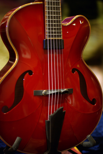 permettent aux visiteurs d'essayer les guitares dans le plus grand