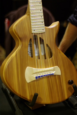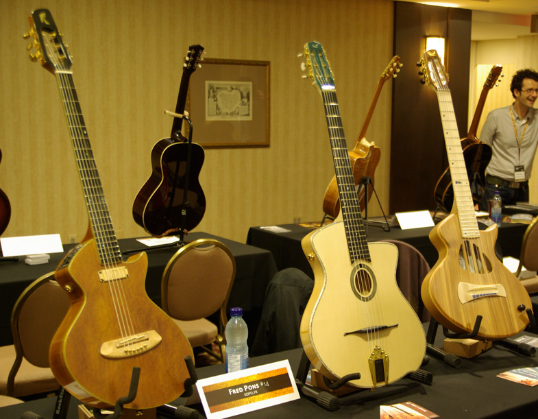 Après un apprentissage dans la lutherie du quatuor, puis au London College of Furniture (lutherie de guitare), Fred Pons a créé l'atelier KOPO en 1988. Depuis 20 ans, il cherche à marier design, confort et son en utilisant bois, carbone et métal pour les solutions ergonomiques et technologiques qu'ils apportent. On verra sa Yalta Jazzy semi-acoustique, sa jazz manouche électro Caravan et sa contrebasse Electro.