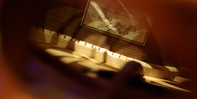 Luthier depuis 1999, diplômé de la West Virginia University, le Virginien Andrew White a son atelier à Morgantown, où il vit. Il nous montrera plusieurs de ses modèles uniques de guitares à cordes d'acier : les modèles C, E et F, ainsi que la guitare Blue Custom Coral Reef, créé en collaboration avec l'artiste Craig Lavin.