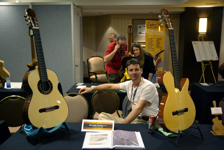 Luthier du sud de la France depuis 10 ans, Olivier Pozzo oriente son travail et sa recherche selon un cahier des charges précis et exigeant : confort de jeu, précision digitale, clarté et rondeur du son, palette des timbres vaste, résonance longue et belle. On découvrira la Nuit de Chine (électroacoustique), une guitare classique de concert, ainsi qu'une archtop, la April in Paris.