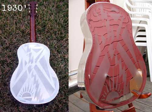 Mais comme nous l’explique Bob dans la vidéo ci-dessous, avant de trouver ce fameux motif « palm tree »(qui fut décliné en différentes variations), l’équipe de John Dopyera développa le motif Lightning Bolt.