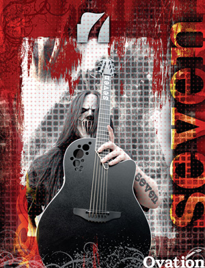 , lead guitarist for the popular metal band Slipknot, partnered with Ovation's R&D team to design every aspect of his limited edition guitar, making the MT37 the loudest and fastest shredder in Ovation’s arsenal. MT37 signature features include a solid spruce top with deep contour body, custom ultra thin maple neck, bass side only multi-sound holes, scalloped "X" bracing, custom "SEVEN" inlays, OP Pro preamp and Ovation’s High Output pickup.