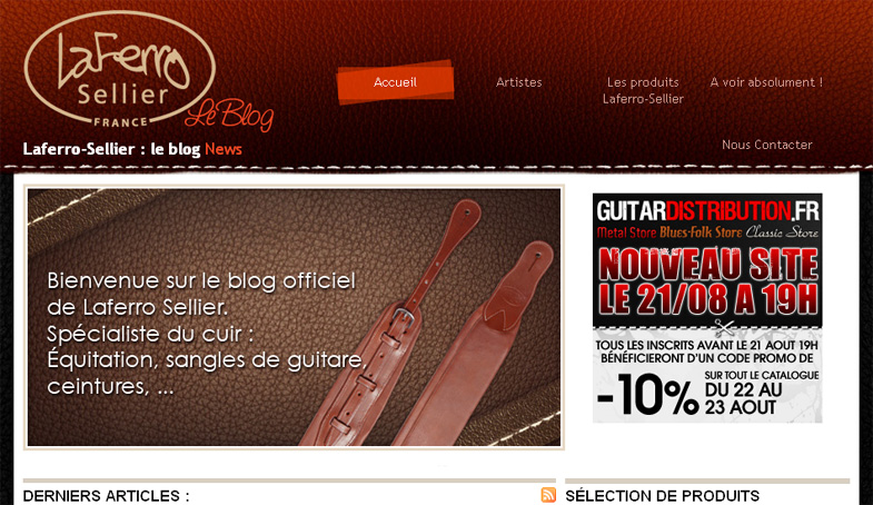 La marque Française Laferro-Sellier est heureuse d'annoncer l'ouverture de son nouveau site http://laferro-sellier.eu/ Ce nouveau site, organisé sous forme de blog, vous informe à la fois des produits Laferro, mais également des techniques utilisées pour concevoir les sangles en cuir.