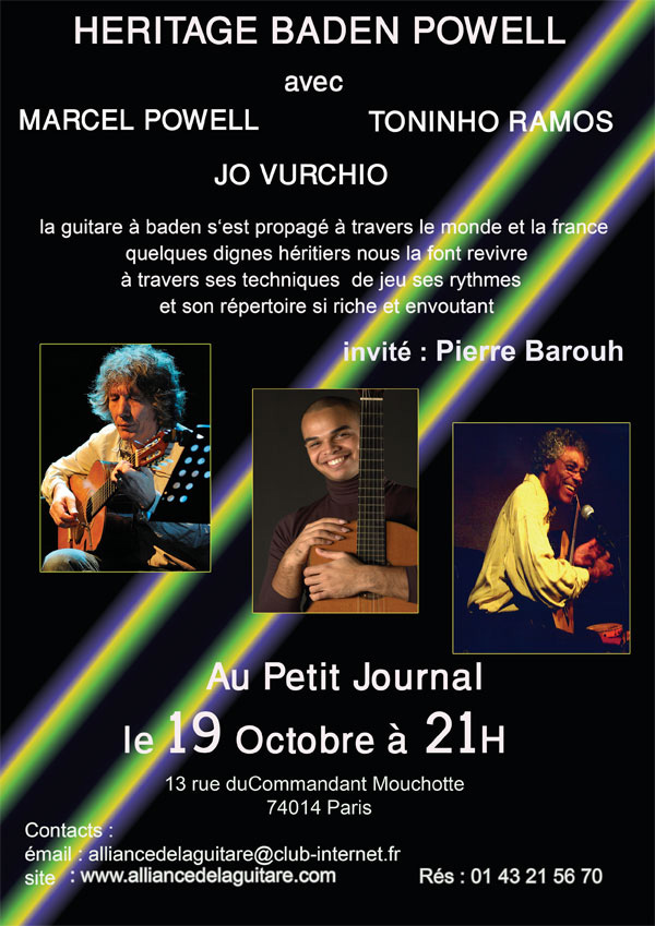 Le dernier concert de baden powell à paris s'est déroulé au petit journal Montparnasse, son fils Marcel à l'époque avait fait aussi ses premiers pas sur scène. Rassembler des grands noms de la guitare pour leurs influences ou leur proximités avec Baden est un hommage rendu à ce grand artiste qui a su importer sa musique dans notre pays et générer d'autres artiste et guitaristes aujourd'hui reconnus et qui n'ont jamais démenti leurs influences à baden.