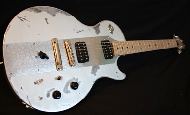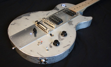 Le modèle TESLA reprend les caractéristiques de l'Icebreaker STD; finition raw alu, manche tout érable et micros Alnico Pro II.