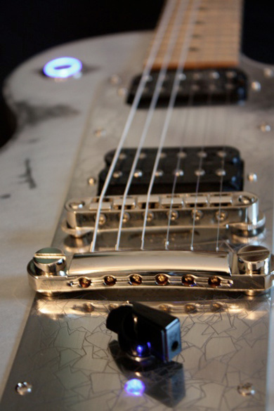 Conçu sur la base d'une Icebreaker, le modèle Tesla reçoit un pickguard traversant en aluminium et intègre un effet Booster d'aigu ( + 25 dB).