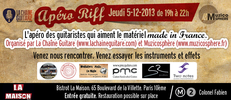 • 2ième Apéro Riff le jeudi 5/12/13 : venez amplifier votre passion pour la guitare
