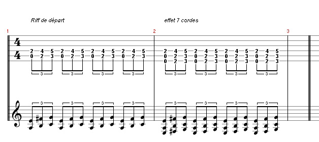 nous joint l'exercice sous deux formats de tablatures, GuitarPro
