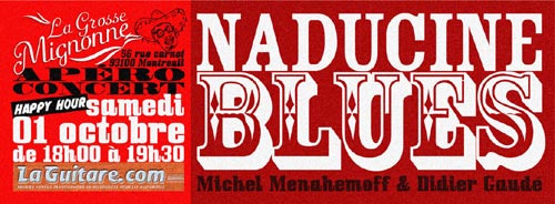 Né d'une rencontre à la Maison Populaire de Montreuil autour du blues, composé de deux guitaristes de talent (Michel Menahemoff & Didier Gaudé), ce duo unplugged, intimiste et chaleureux, nous entraine sur la piste d'un blues authentique qui laisse une place de choix à la guitare. A ne rater sous aucun prétexte !... CONCERT
