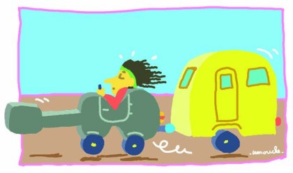 les deux tentes, les trois vélos, les trois enfants, le chien