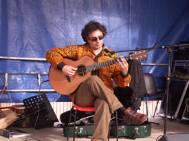 uns de ses morceaux mais repart aussitôt à la recherche d'une guitare