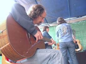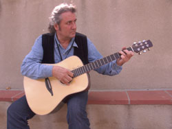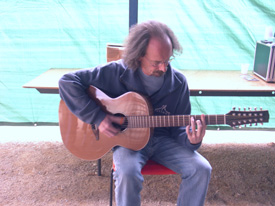 Purist épicéa - Eclisses et fond en palissandre - Table en épicéa - Touche et Chevalet en ébène Coordonnées du luthier Photo : Claude Fouquet avec son modèle Purist