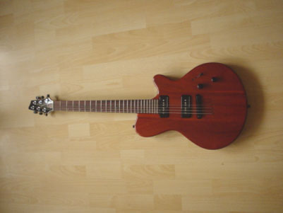 avec un corps (en 3 parties) et un manche en acajou ; on retrouve