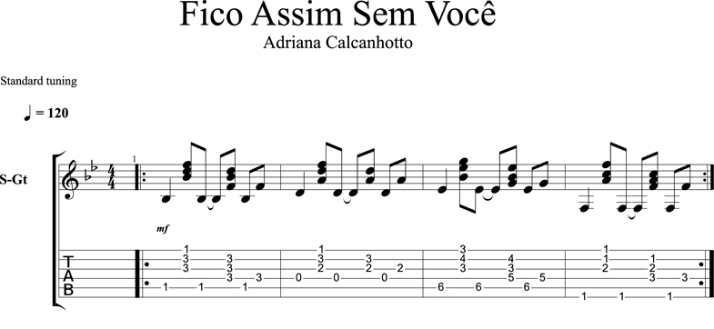 Fico Assim Sem Você est une tourne très intéressante car elle permet de jouer un "cliché" de musique Brésilienne sans avoir à en apprendre les accords compliqués !