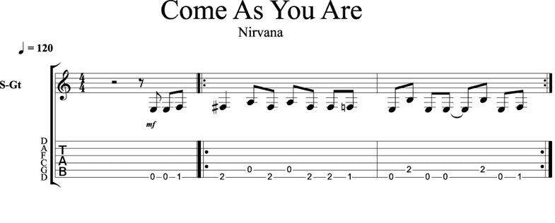 Come As You are, tiré du second album Nevermind, considéré comme une référence du genre, a été entendu par tous et fait partie des "must play" des débutants. Enjoy !