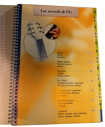 Le livre est ensuite composé d'onglets pour chaque accord ce qui permet un accès direct et non séquentiel à l'information recherchée.