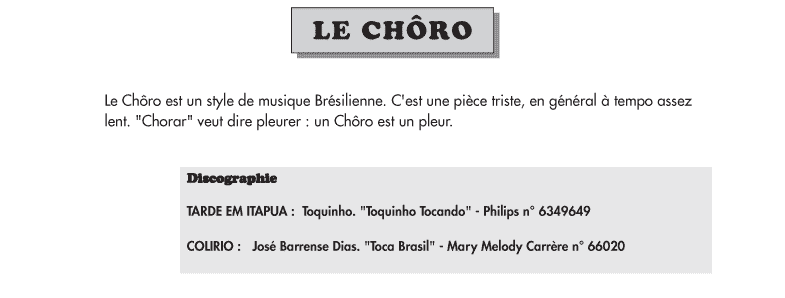 Pour ce plan pédago consacré aux Astuces de la guitare brésilienne volume 1, je vous propose de découvrir le Chôro, style brésilien si particulier. Voici ci dessous un petit medley récupéré du web :