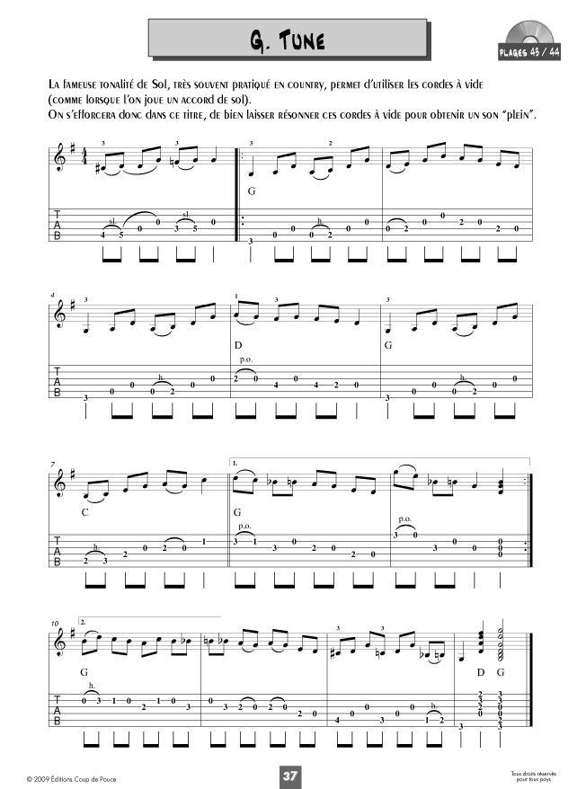 Un large chapitre est également consacré à la technique des effets employés en country: bend; reverse bend; chicken picking; technique hybride; single notes.