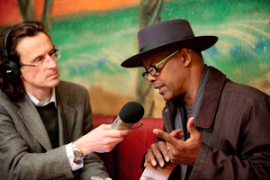 Fin 2000, le web guitare voit arriver Pierre Journel avec sa chemise à fleurs et son micro vissé à la main (ci-contre à gauche sans sa chemise aux côtés de l'imennse Eric Bibb). Personnage discret et attachant, il a très rapidement imposé sa propre ligne éditoriale dont la grande particularité est l'interview. La liste de ses invités est impressionnante et Pierre a su garder la fraicheur de ses interventions au micro pour affirmer un style bien à lui. Je ne suis pas peu fier d'avoir donné ma première interview à Pierre pour la promotion de Guitares au Beffroi.