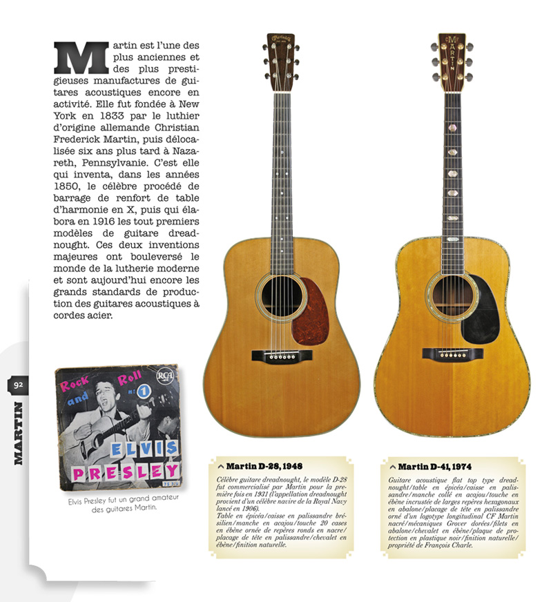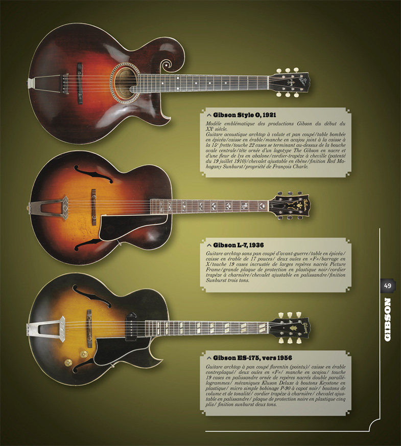 Chaque guitare est illustrée d'une photo, d'un descriptif technique et d'un petit historique.