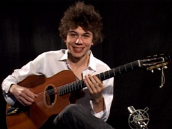 Timide à l'écran pour s'exprimer, il ne l'est pas le moins du monde quand il se saisit de sa guitare.