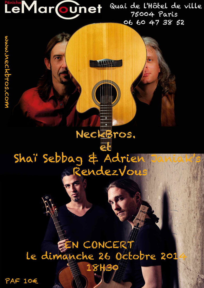 Adrien Janiak et Shaï Sebbag : la fusion improbable du Ukulélé et de la Guitare Fingerstyle. Une rencontre à Issoudun en novembre 2013 et 3 mois plus tard, une tournée triomphale aux USA, de Los Angeles à San Francisco, en passant par Santa Monica, Santa Cruz, Los Gatos...etc...