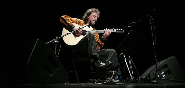 Le silence s'installe... Pierre Bensusan commence par un tube absolu "Voyage pour l'Irlande".