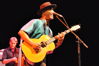Que ce soit au Sunset, en février 2008, au Cabaret Sauvage, en mai 2009, à la DixieFrog Blues Night, en novembre 2009, ou samedi soir dernier à l'Espace Jean Racine à St Rémy les Chevreuse, je n'ai jamais ressenti que du bonheur en sortant de la salle, des vibrations encore présentes au fond de moi, au creux du ventre, des émotions au cœur, de magnifiques mélodies en tête, une joie de vivre et cette impression particulière, légère mais indélébile, d'avoir partagé avec des amis et des inconnus un moment simple et sincère grâce à un artiste investi et inspiré autant que lumineux et enthousiaste. Son entrain, son ardeur, sa vitalité, se reflètent dans ses compositions, de nature classique et pourtant résolument contemporaines, et pourtant si intemporelles parfois.