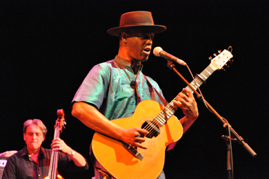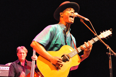 Sa complicité avec son excellent batteur Larry Crockett est réelle, ce dernier prenant tant de plaisir à jouer qu'il a un immense sourire aux lèvres, en permanence. Eric Bibb a besoin de faire participer son public car il se nourrit de son élan et lui donne son énergie. Il est toujours présent, jamais avare de son temps, aux séances de dédicace, il est attentif à chacun, personnalise chaque autographe et aime à rencontrer les gens. Ce respect sous-tend sa musique, respect des Anciens, respect de l'histoire même de la naissance du Blues, respect du Seigneur, et à travers cela, selon moi, respect simplement de l'Homme.