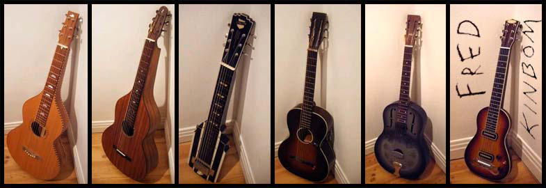 Les Guitares de Fred Kinbom2006 Lazy River custom Weissenborn - 2008 Burgin custom baritone Weissenborn -1937 National New Yorker - 1930s Oahu student model - 2008 MM "Blues" resonator - 2009 Lap King custom Rodeo
