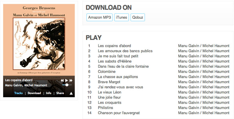 Lundi 4 mars 2013, Bonsaï Music republie un très bel hommage à Georges Brassens interprété avec délicatesse et élégance par nos amis Manu Galvin et Michel Haumont.