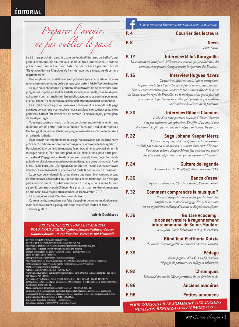 PORTRAITS - GUITARE CLASSIQUE SOMMAIRE DU NUMéRO 72