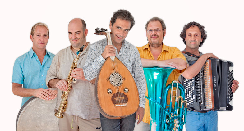 Rabih Abou-Khalil (Liban) oud & compositions, Gavino Murgia (Sardaigne) chant & saxophone soprano, Luciano Biondini (Italie) accordéon, Michel Godard (France) tuba & serpent, Jarrod Cagwin (USA) batterie & percussions.